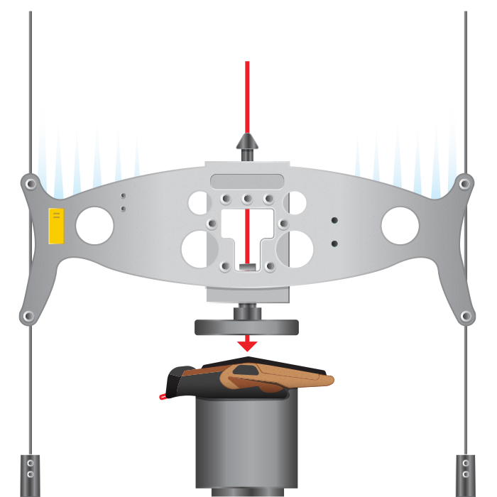 The impact machine is prepared with a 5.5 pound steel striker and released along a vertical path with 5 ±.02 J of force onto the glove sample placed. The sample is placed on a test anvil attached through a force transducer for recorded measurement.