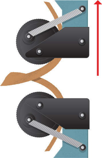 The jaws of the machine are fitted with the sample material and tear resistance is measured as the jaws move apart at a constant rate of speed. The force needed to tear the material is recorded and the lowest result of four tests is advertised.