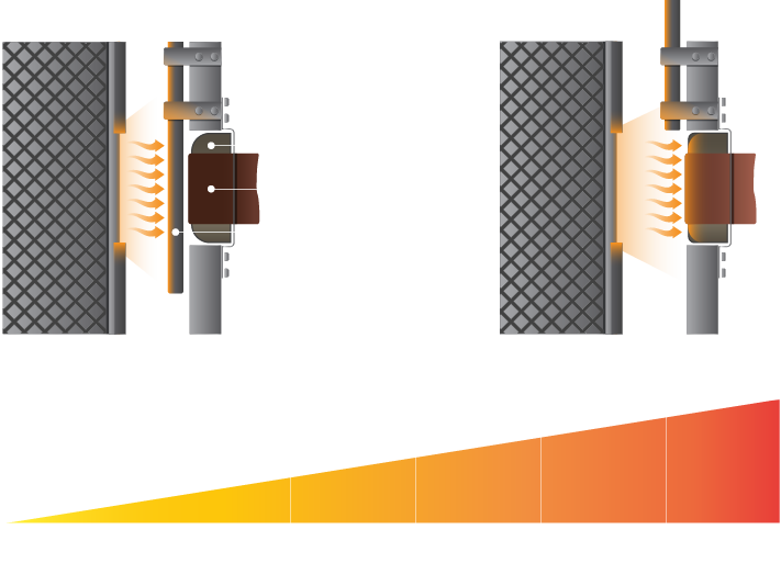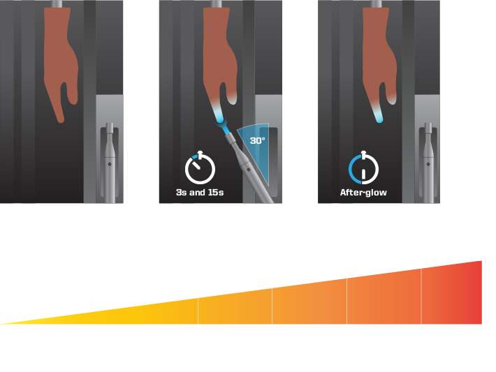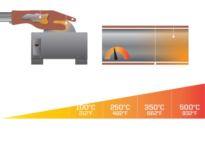 Thermal protection from Radiant Heat is determined by measuring a temperature rise of 24° C (75° F) inside the glove when exposed to a defined heat source.